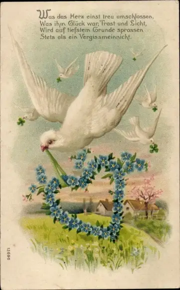 Ak Glückwunsch, Tauben, Vergissmeinnicht, Kitsch