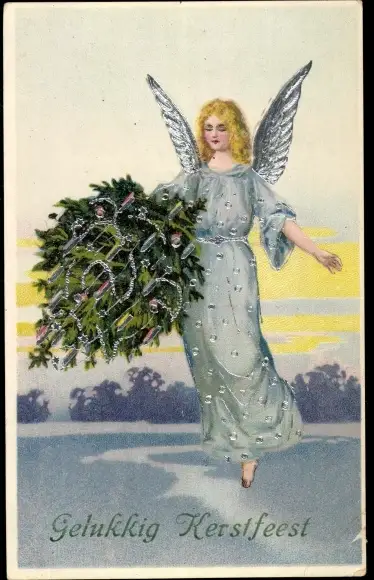 Ak Glückwunsch Weihnachten, Engel, Tannenbaum