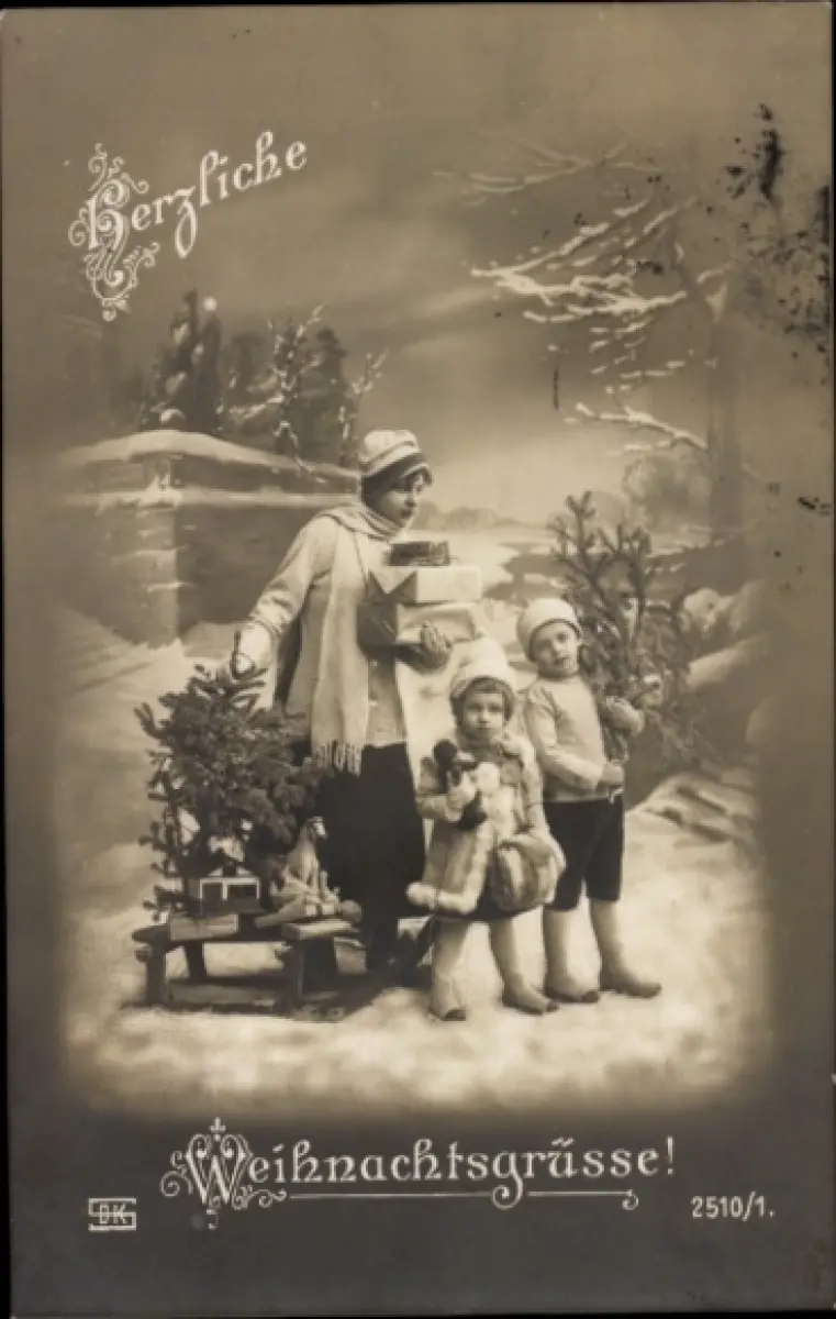 Ak Glückwunsch Weihnachten, Kinder, Schlitten