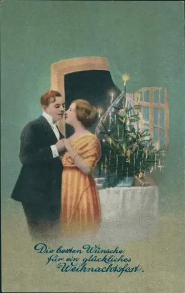 Ak Glückwunsch Weihnachten, Liebespaar, Tannenbaum