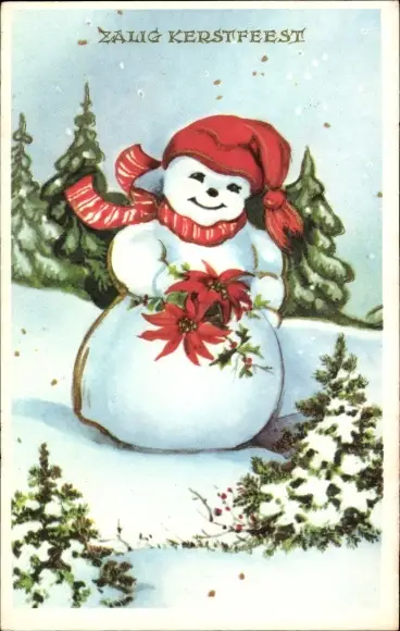 Ak Glückwunsch Weihnachten, Schneemann, Blüten