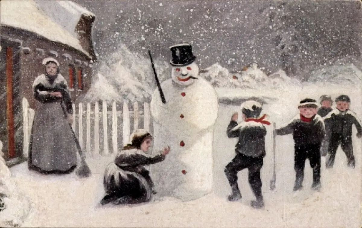 Ak Glückwunsch Weihnachten, Schneemann, Kinder