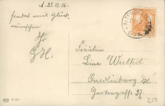 Zustand, siehe Scan, gelaufen, 1916- EAS K 327 - ca 9 cm X 14 cm