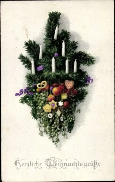 Ak Glückwunsch Weihnachten, Tannenzweige, Kerzen, Plätzchen
