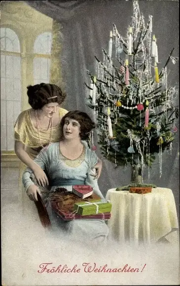 Ak Glückwunsch Weihnachten, Zwei Frauen, Geschenke, Tannenbaum