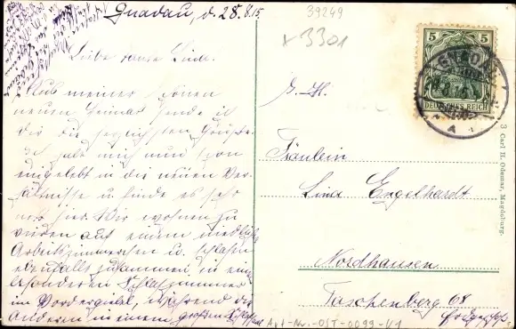 Zustand, siehe Scan, gelaufen, 1915 - ca 14 cm X 9 cm