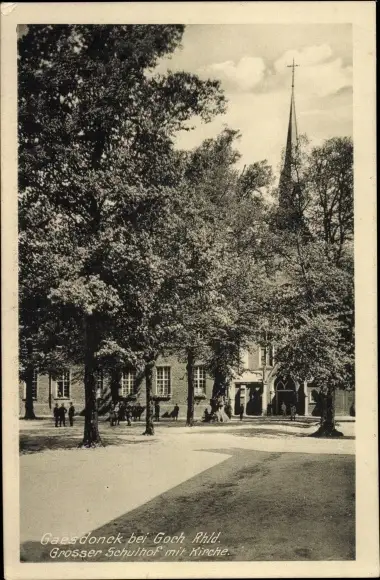 Ak Goch am Niederrhein, Gaesdonck, Großer Schulhof mit Kirche