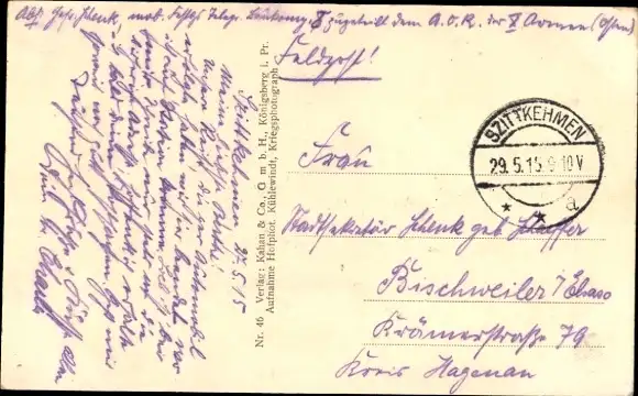 Zustand, siehe Scan, gelaufen, 1915 - ca 14 cm X 9 cm