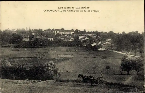 Ak Godoncourt Vosges, Panorama vom Ort, Pferdefuhre
