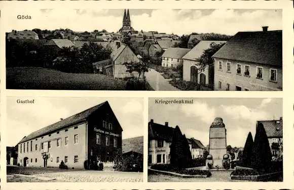 Ak Göda in der Oberlausitz, Gesamtansicht, Gasthof, Kriegerdenkmal