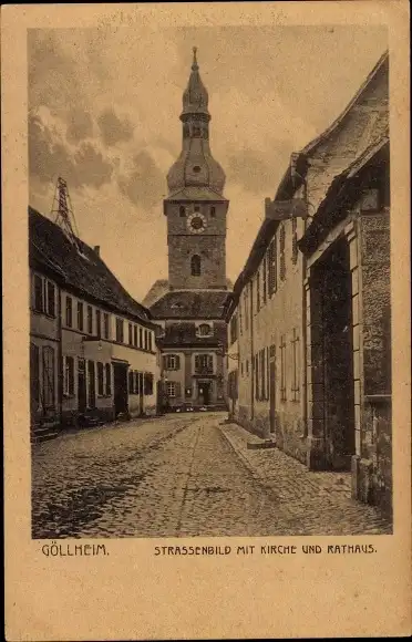 Ak Göllheim in der Pfalz, Straßenbild, Kirche, Rathaus