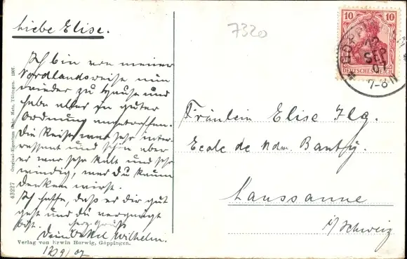 Zustand, siehe Scan, gelaufen, 1907 - ca 14 cm X 9 cm