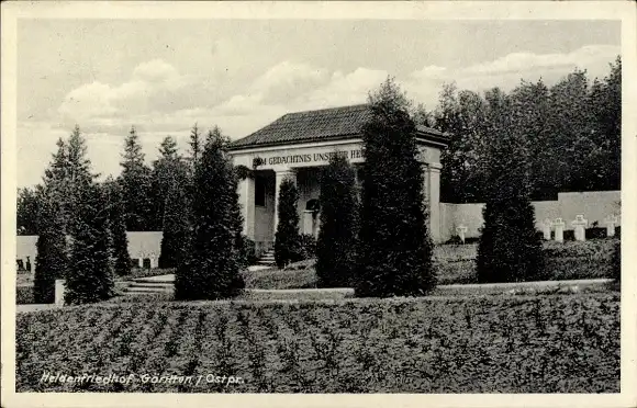 Ak Göritten Ostpreußen, Heldenfriedhof mit Häuschen