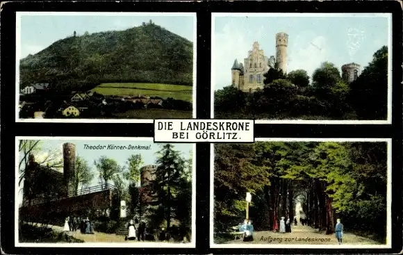 Ak Görlitz, Landeskrone, Theodor Körner Denkmal, Wald