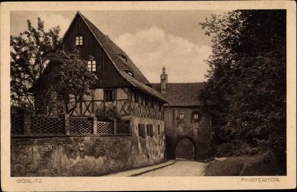 Ak Görlitz in der Lausitz, Am Finstertor, Straßenpartie, Fachwerkhaus