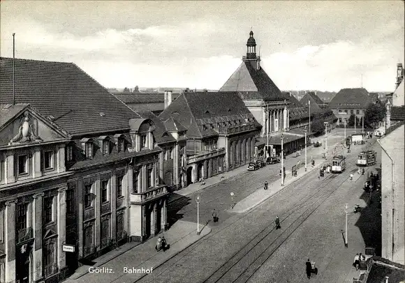 Ak Görlitz in der Lausitz, Bahnhof, Straßenbahn