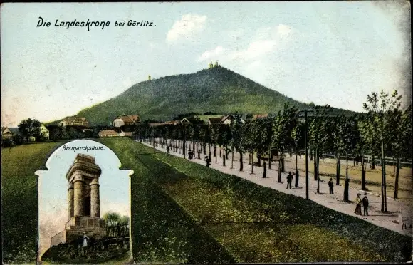 Ak Görlitz in der Lausitz, Blick auf die Landeskrone, Bismarcksäule