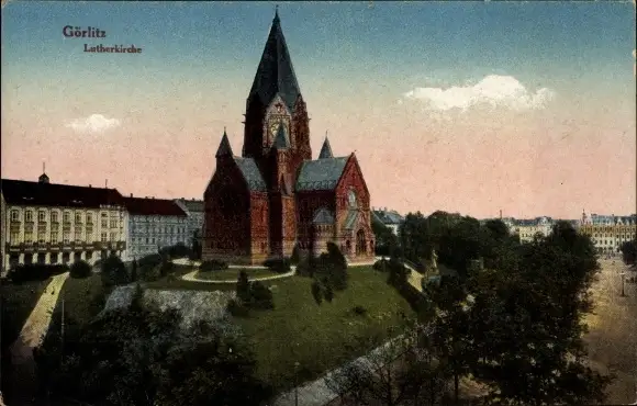 Ak Görlitz in der Lausitz, Blick auf die Lutherkirche, Denkmal