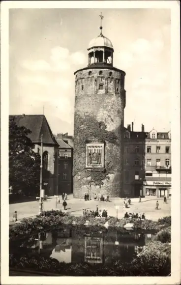 Ak Görlitz in der Lausitz, Dicker Turm am Marienplatz
