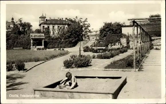 Ak Görlitz in der Lausitz, Friedenshöhe, spielendes Kind, Sandkasten