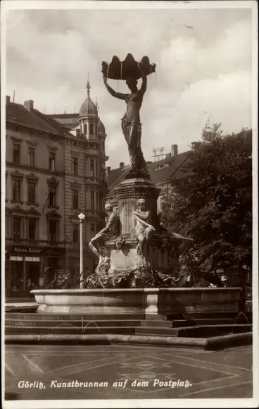 Ak Görlitz in der Lausitz, Kunstbrunnen auf dem Postplatz