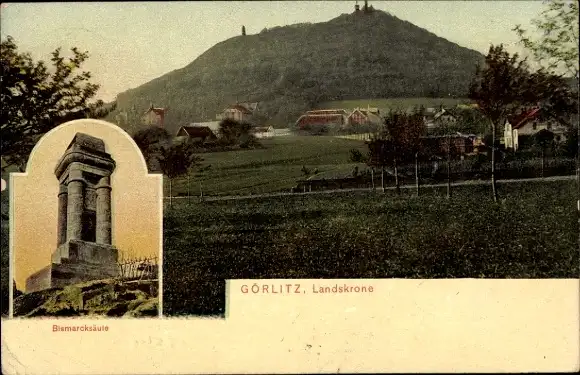 Ak Görlitz in der Lausitz, Landeskrone, Bismarcksäule