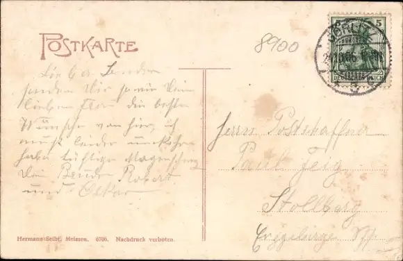 Zustand siehe Scan, 1906, gelaufen - ca 14 cm X 9 cm