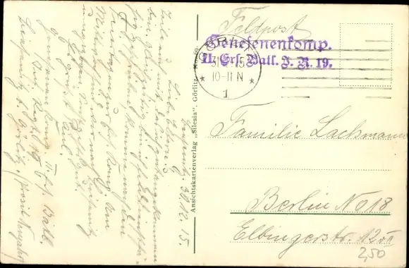 Zustand, siehe Scan, gelaufen, 1915 - ca 14 cm X 9 cm