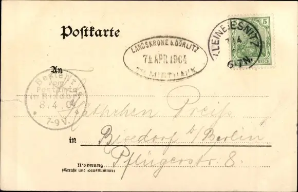 Zustand, siehe Scan, gelaufen, 1904 - ca 14 cm X 9 cm