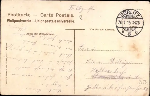 Zustand, siehe Scan, gelaufen, 1915 - ca 14 cm X 9 cm