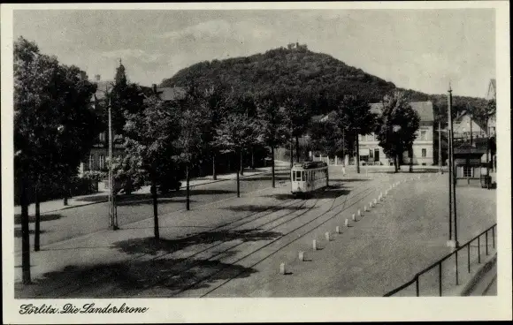 Ak Görlitz in der Lausitz, Landeskrone, Straßenbahn