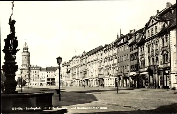 Ak Görlitz in der Lausitz, Leninplatz mit Ritterbrunnen und Reichenbacher Turm