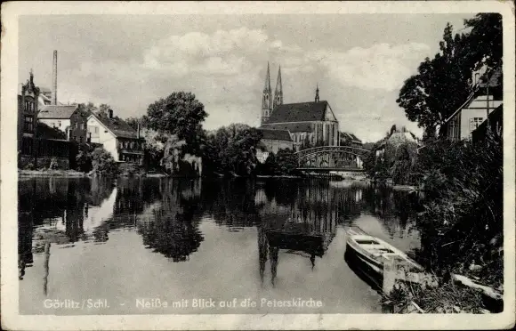 Ak Görlitz in der Lausitz, Neiße mit Blick auf die Peterskirche