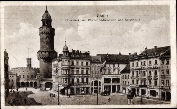 Ak Görlitz in der Lausitz, Obermarkt mit Reichenbacher Turm und Kaisertrutz