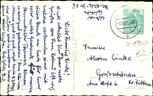 Zustand, siehe Scan, gelaufen, 1961 - ca 14 cm X 9 cm
