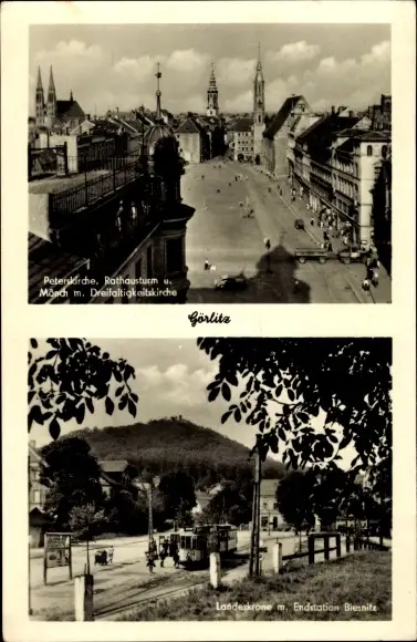 Ak Görlitz in der Lausitz, Peterskirche, Rathausturm, Mönch, Dreifaltigkeitskirche, Landeskrone