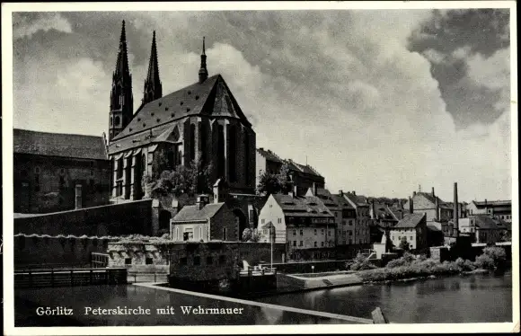 Ak Görlitz in der Lausitz, Peterskirche mit Wehrmauer