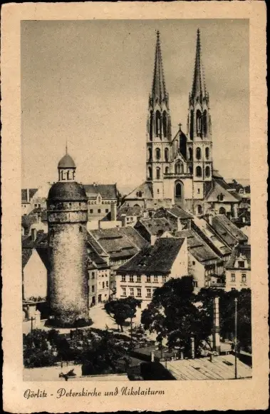 Ak Görlitz in der Lausitz, Peterskirche und Nikolaiturm
