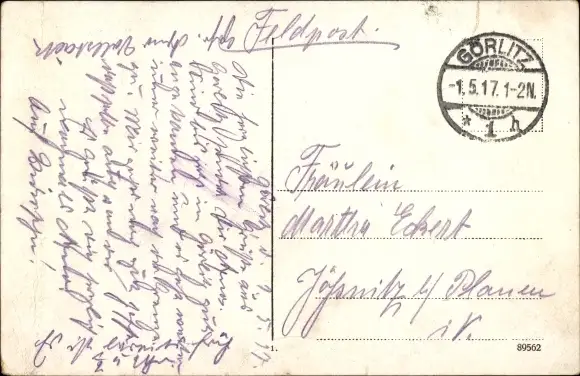 Zustand, siehe Scan, gelaufen, 1917 - ca 14 cm X 9 cm