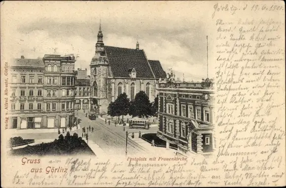 Ak Görlitz in der Lausitz, Postplatz mit Frauenkirche
