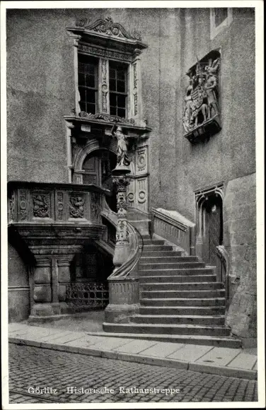 Ak Görlitz in der Lausitz, Rathaustreppe