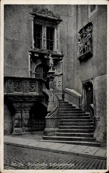 Ak Görlitz in der Lausitz, Rathaustreppe