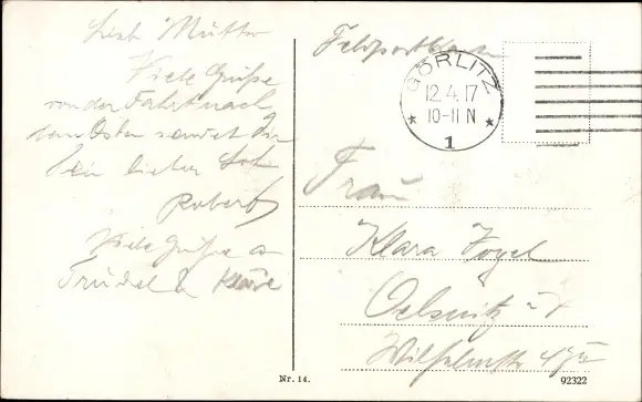 Zustand, siehe Scan, gelaufen, 1917 - ca 9 cm X 14 cm