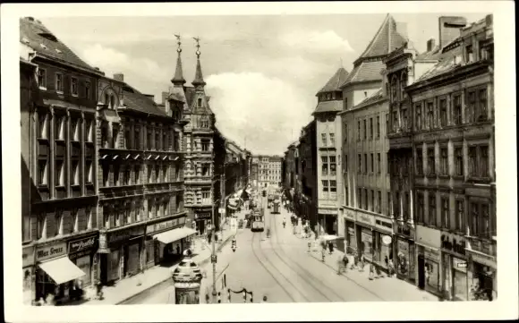 Ak Görlitz in der Lausitz, Straßenpartie, Straßenbahn