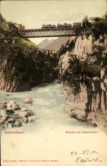 Ak Göschenen Kanton Uri, Brücke, Gotthardbahn