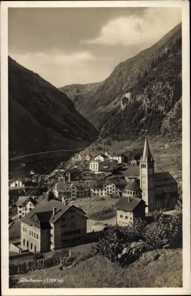 Ak Göschenen Kt. Uri, Totalansicht des Ortes im Tal