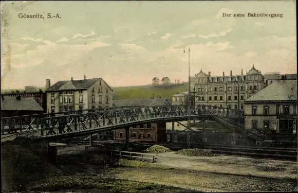 Ak Gößnitz in Thüringen, Neuer Bahnübergang