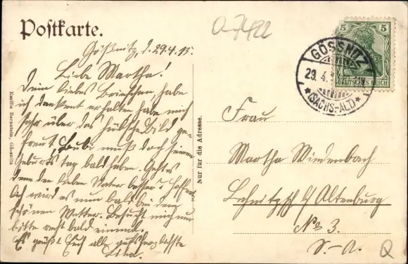 Zustand, siehe Scan, gelaufen, 1915 - ca 14 cm X 9 cm