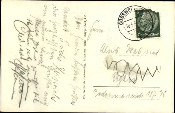gelaufen 1938, Eckknick rechts unten, sonst guter Zustand