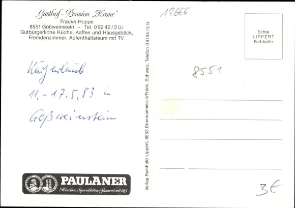 Ak Gößweinstein in Oberfranken, Gasthof Pension Hoppe